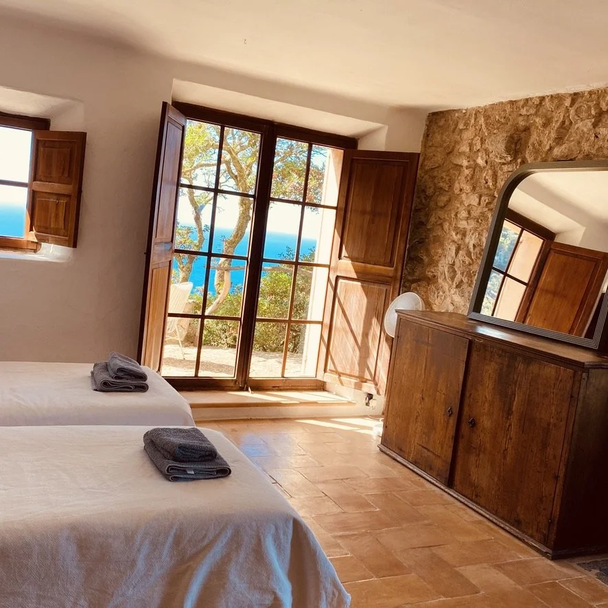 This room has two twin beds and offer a serene atmosphere with views over mountains and ocean. The room will be shared with one other guest and has a shared bathroom.