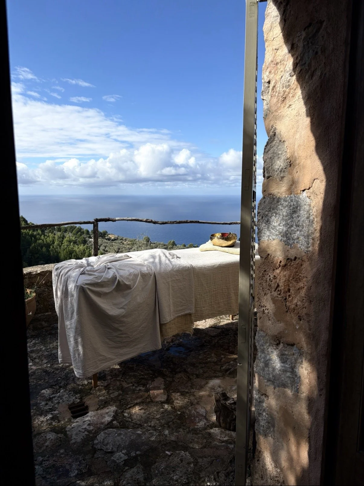 Known for her calm and caring approach, she creates a space where the body can soften, restore and return to its natural rhythm - whether beneath the open sky or within the quiet intimacy of the monastery.